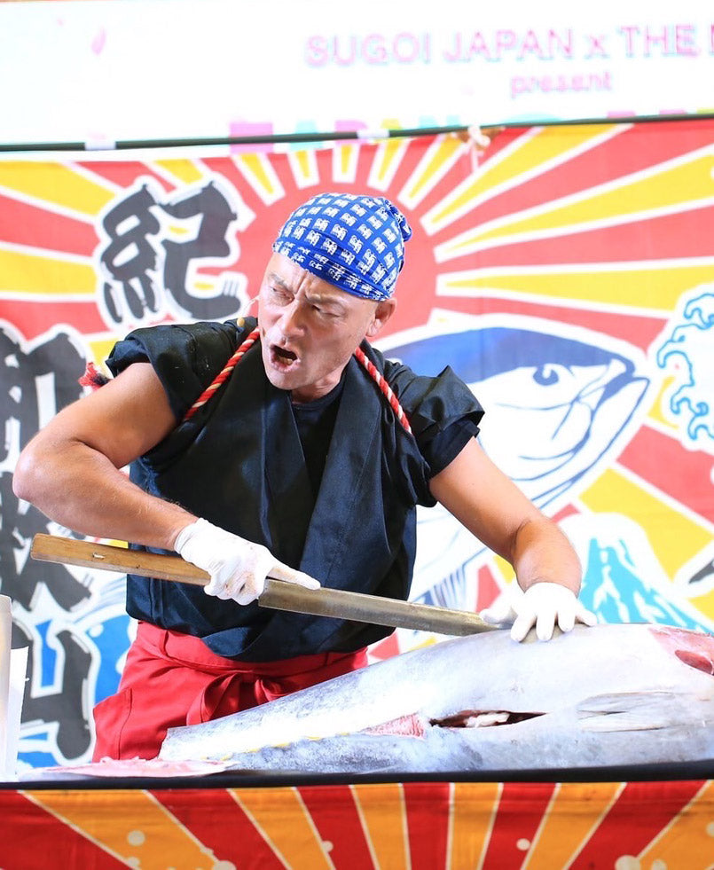 Yoshinori Izumi first encountered tuna while working part-time delivering fish at Wakayama’s central market during his university days. He and his mentors later opened the Kuroshio Market, a seafood market catering to visitors at Wakayama Marina City at the World Resort Expo in 1994. Since its opening, the market’s tuna filleting shows have been a major attraction. being held three times daily for 27 years, with over 30,000 performances, earning them recognition as Japan’s top filleting show. Recently, increasing inbound tourism has drawn more international visitors to the experience.
